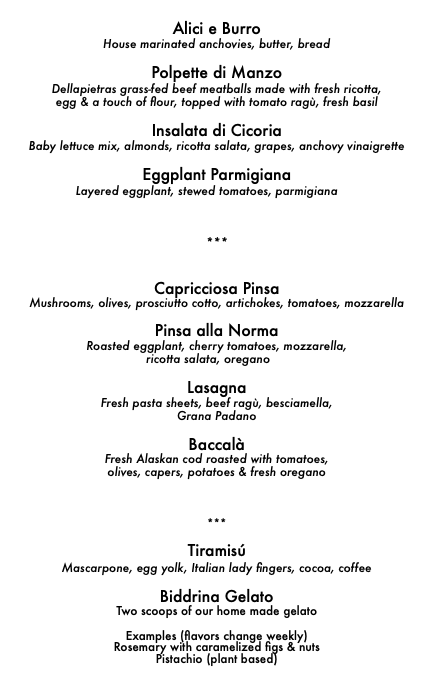 Sample Menu for Sit-Down Dinner